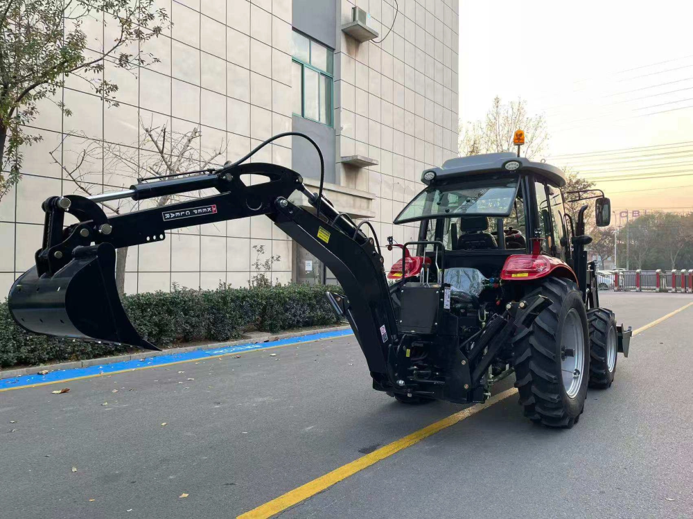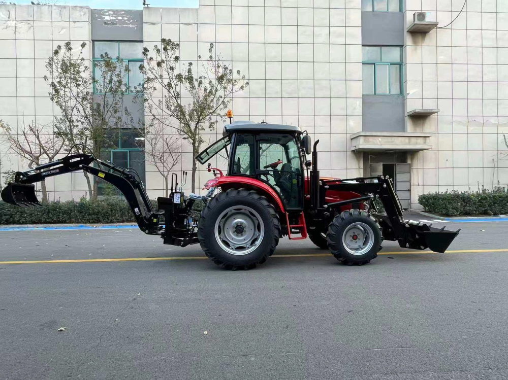 Agricultural tractor loader with excavator, 80 horsepower